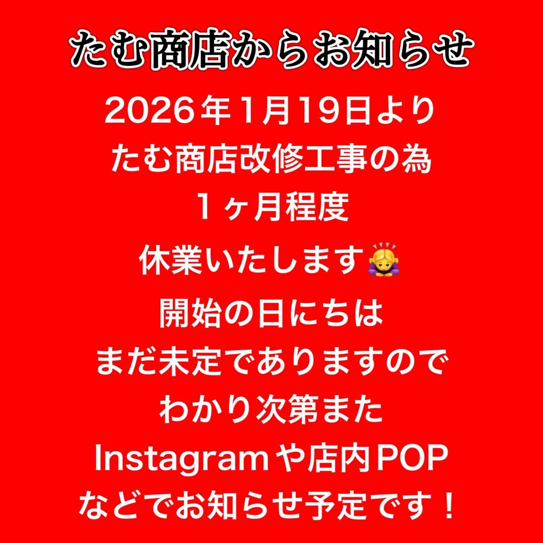 営業再開などはたむ商店Instagram